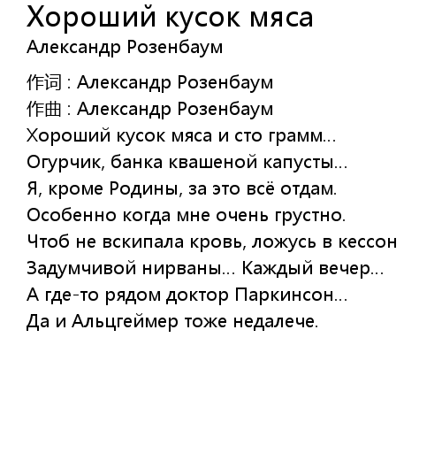 | 歌曲 | Хороший кусок мяса |