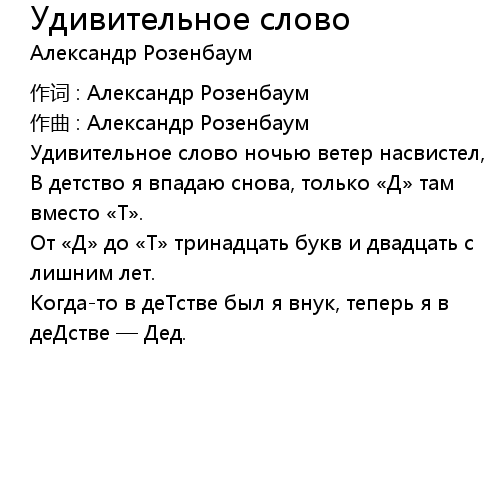 | 歌曲 | Удивительное слово |