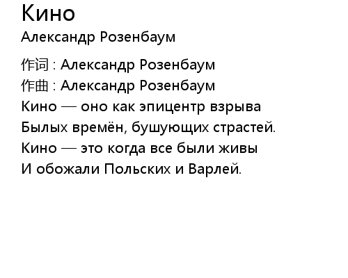 | 歌曲 | Кино |