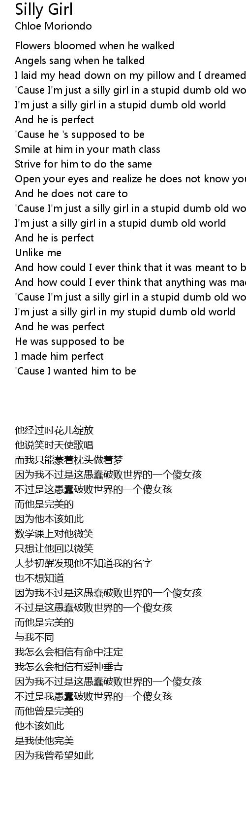 I'm just a silly girl in my stupid dumb old world |