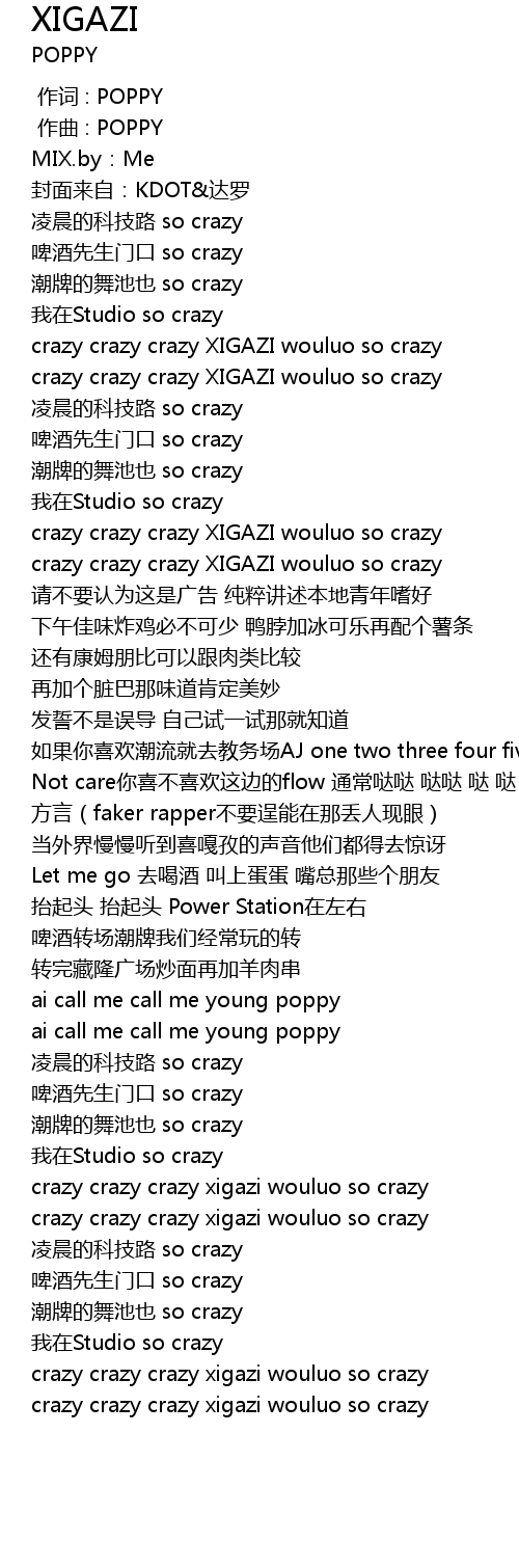 | [01:50.258] | crazy crazy crazy xigazi wouluo so crazy |