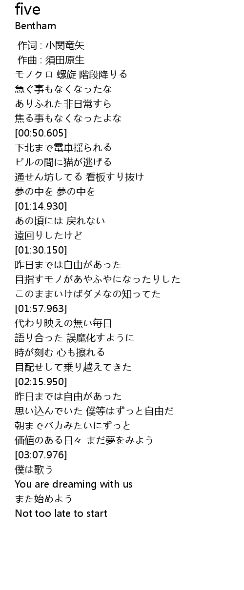 | [02:40.314] | 思い込んでいた 僕等はずっと自由だ |