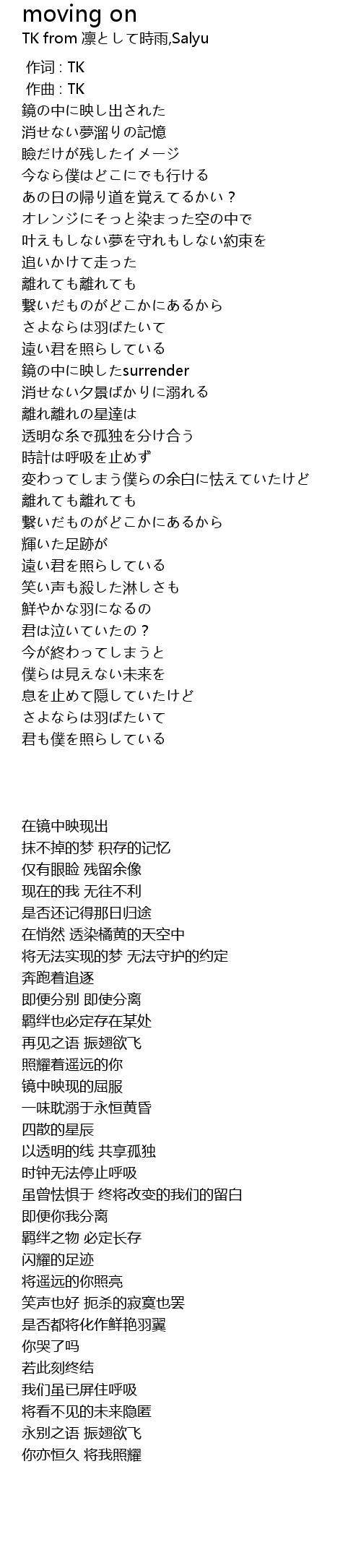 | [00:00.000] | 作词 : TK |