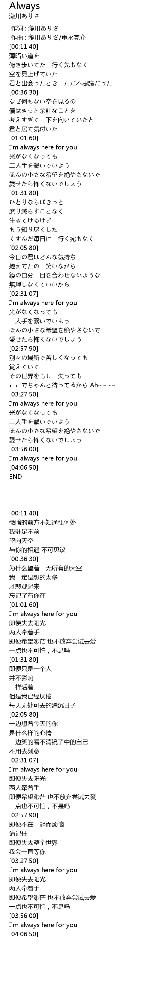 | [03:28.70] | I`m always here for you |