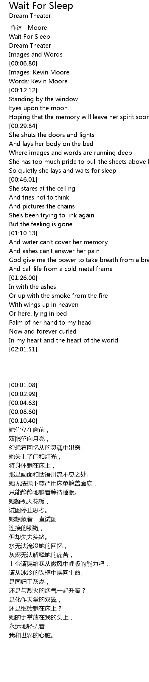 | [00:01.08] | Wait For Sleep |