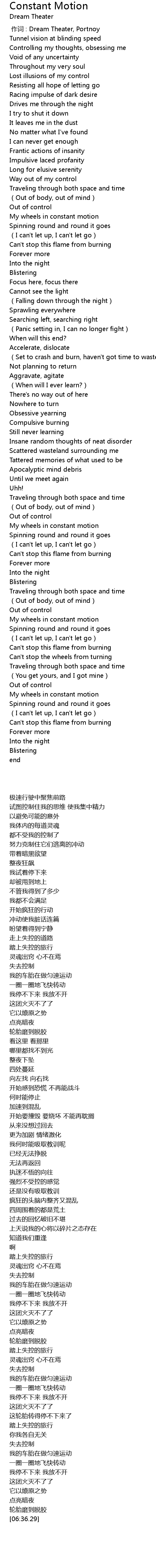 | [06:00.91] | My wheels in constant motion |