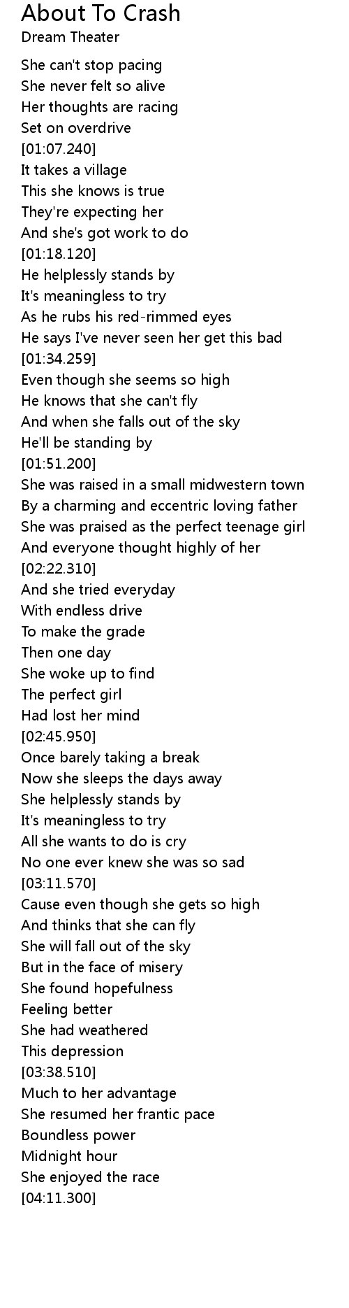 | [03:20.120] | She will fall out of the sky |