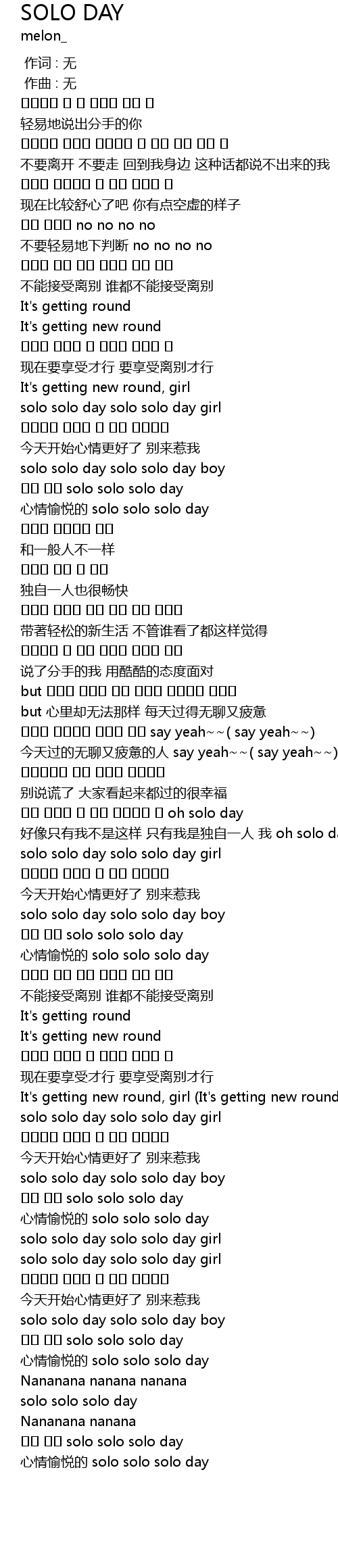 | [03:12.465] | 心情愉悦的 solo solo solo day |