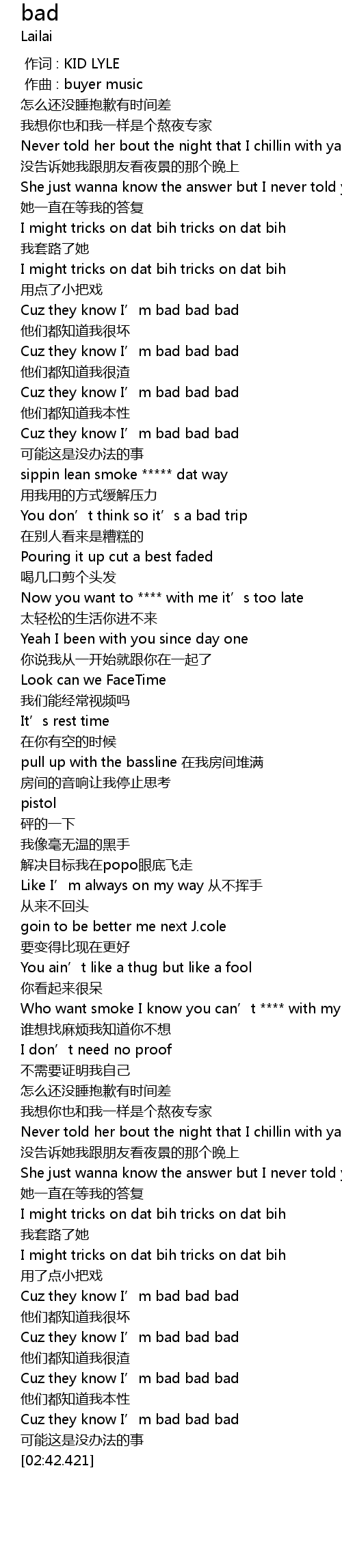 | [00:43.778] | Cuz they know I' m bad bad bad |