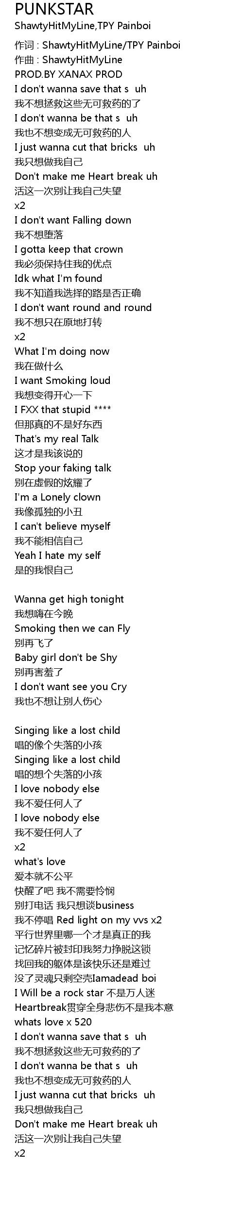 | 作词 : ShawtyHitMyLine/TPY Painboi | |