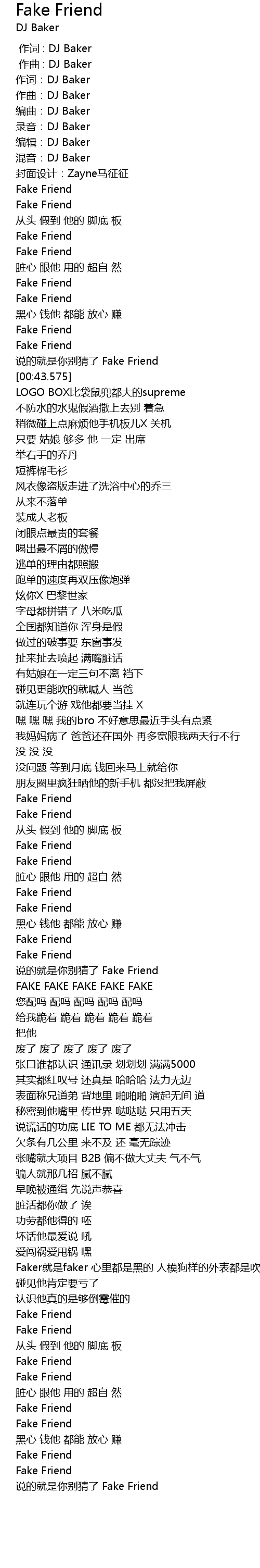 | [00:41.823] | 说的就是你别猜了 Fake Friend |