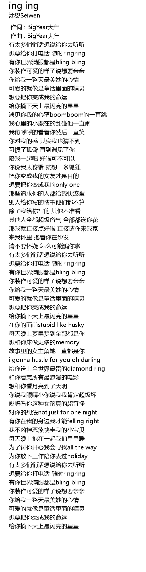 | [01:39.487] | 想要给你打电话 随时ringring |