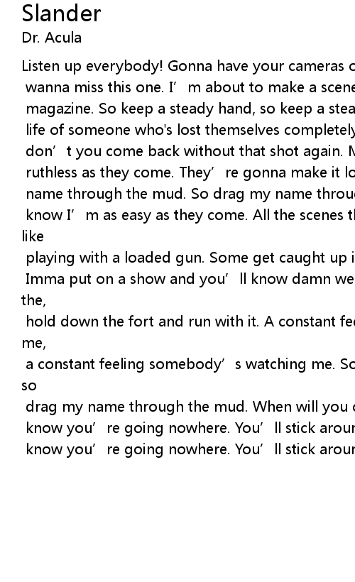 | a constant feeling somebody' s watching me. So drag my name through the mud, so | |