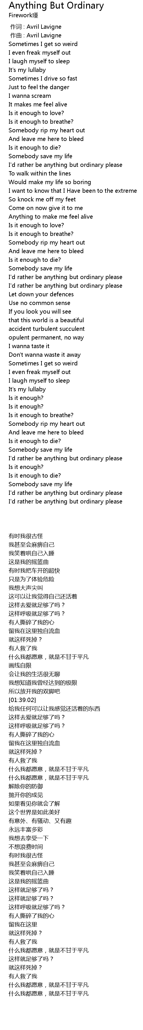 | [00:00.000] | 作词 : Avril Lavigne |