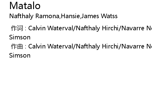 | [00:00.000] | 作词 : Calvin Waterval/Nafthaly Hirchi/Navarre Novion Norah/Joy Simson |