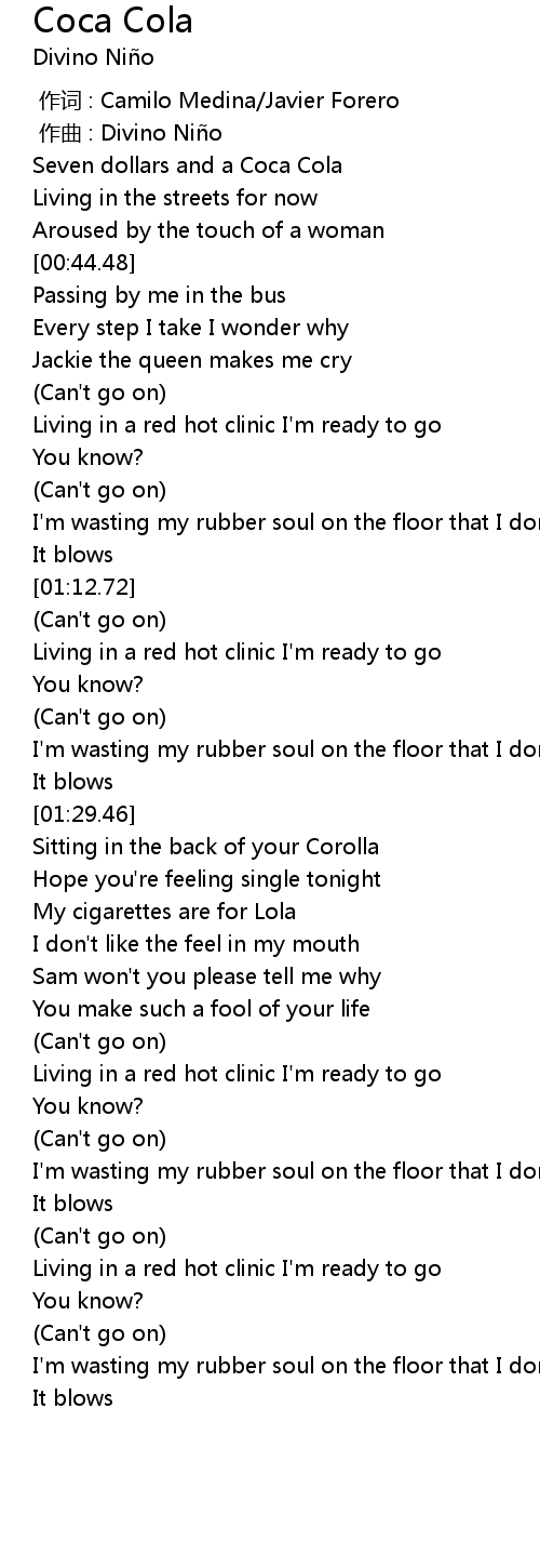 | [00:33.23] | Seven dollars and a Coca Cola |