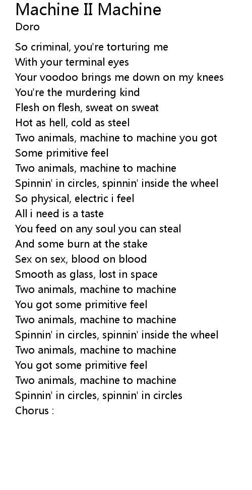 Two animals, machine to machine you got |