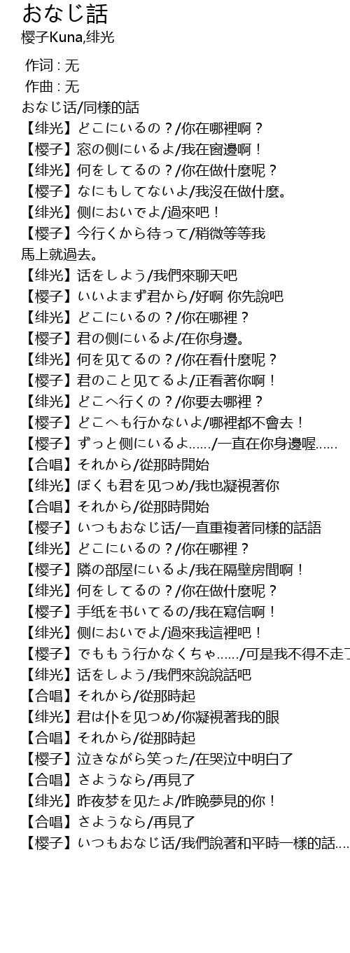 | [00:00.00] | おなじ话/同樣的話 |