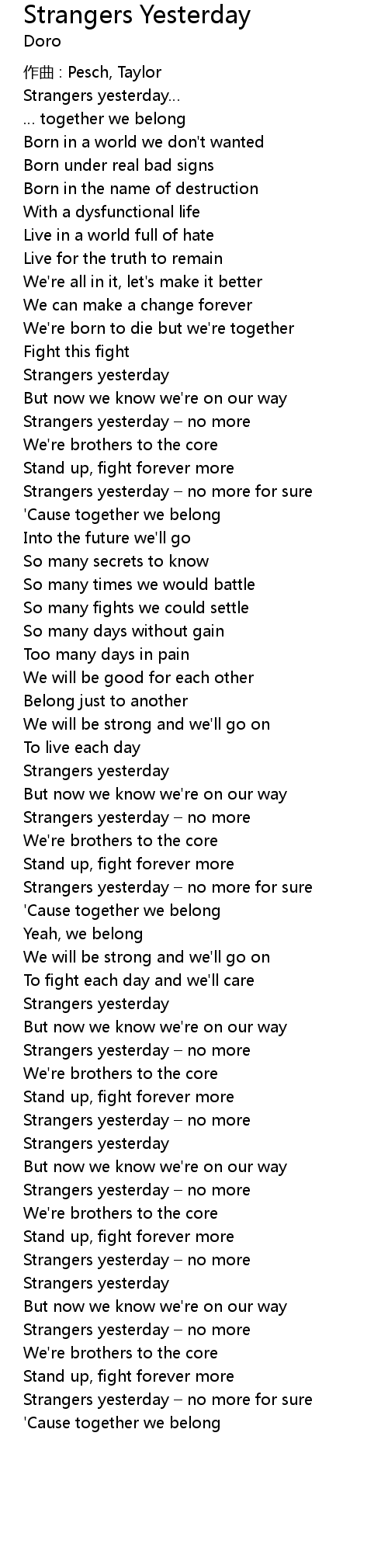 | 歌曲 | Strangers Yesterday |