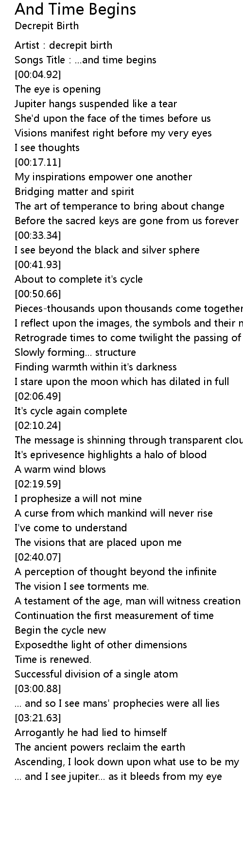 | [00:02.42] | Songs Title:...and time begins |