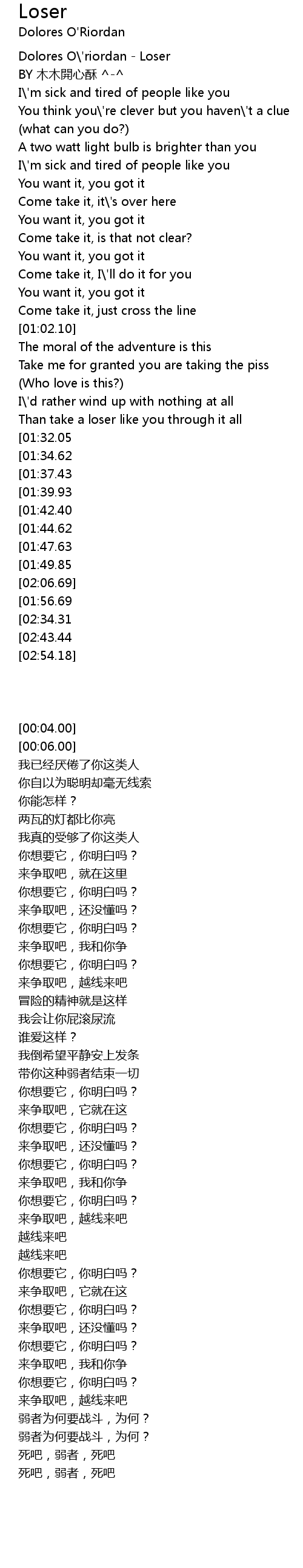 | [00:04.00] | Dolores O\'riordan - Loser |