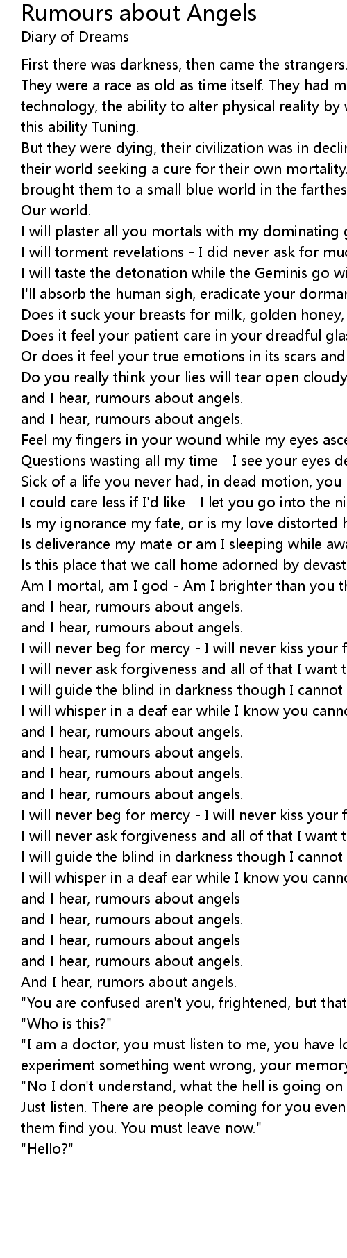 Just listen. There are people coming for you even as we speak. You must not let them find you. You must leave now." |