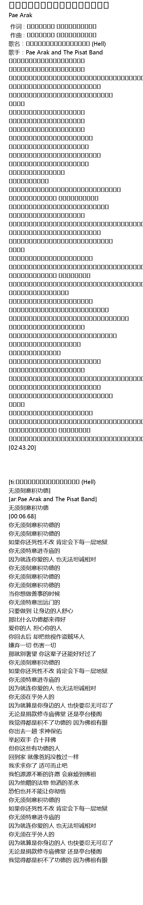 | [ti:ไม่ต้องทำหรอกบุญ (Hell) 无须刻意积功德] | |