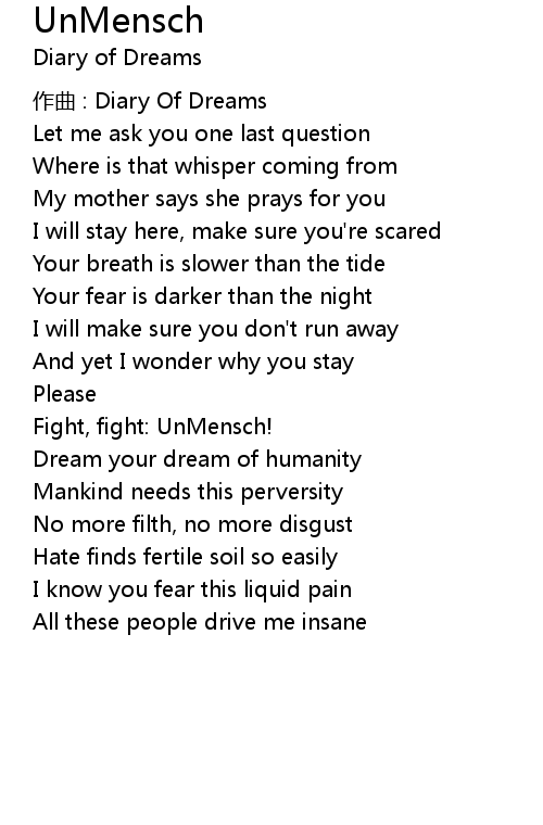 | zuò qǔ : Diary Of Dreams | |