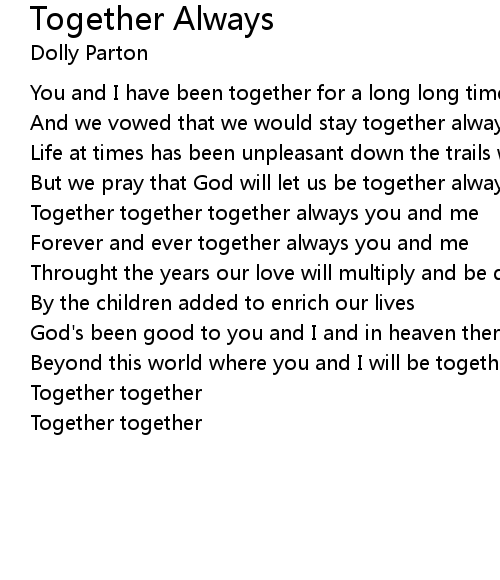Together together together always you and me |