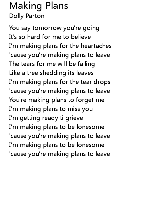 | I'm making plans to be lonesome | |