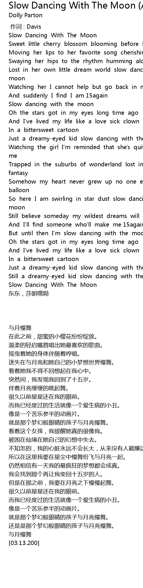 | [00:02.70] | Slow Dancing With The Moon |