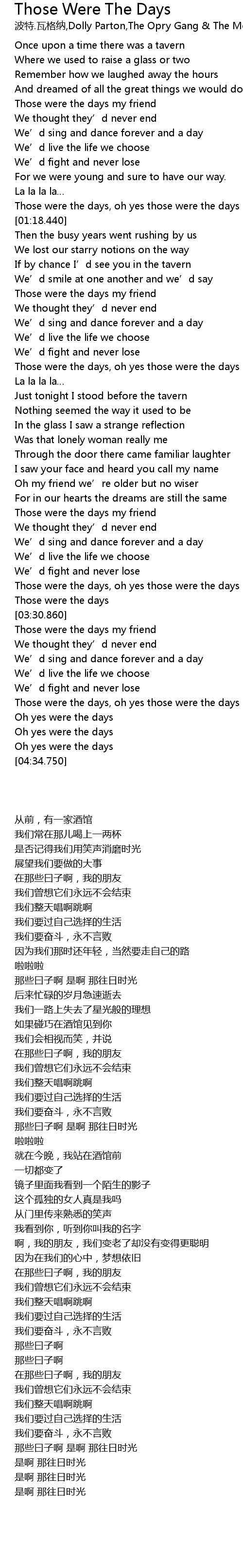| [02:59.740] | Those were the days my friend |
