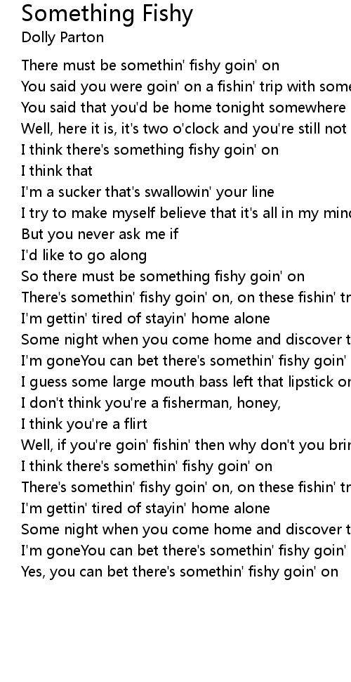 I'm goneYou can bet there's somethin' fishy goin' on |