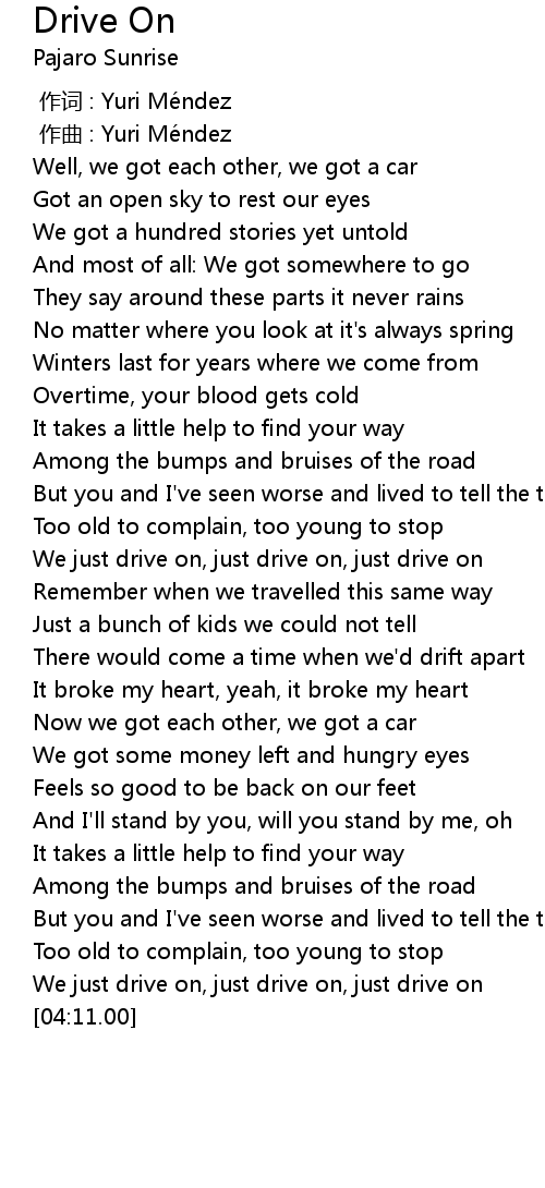 | [03:37.38] | We just drive on, just drive on, just drive on |