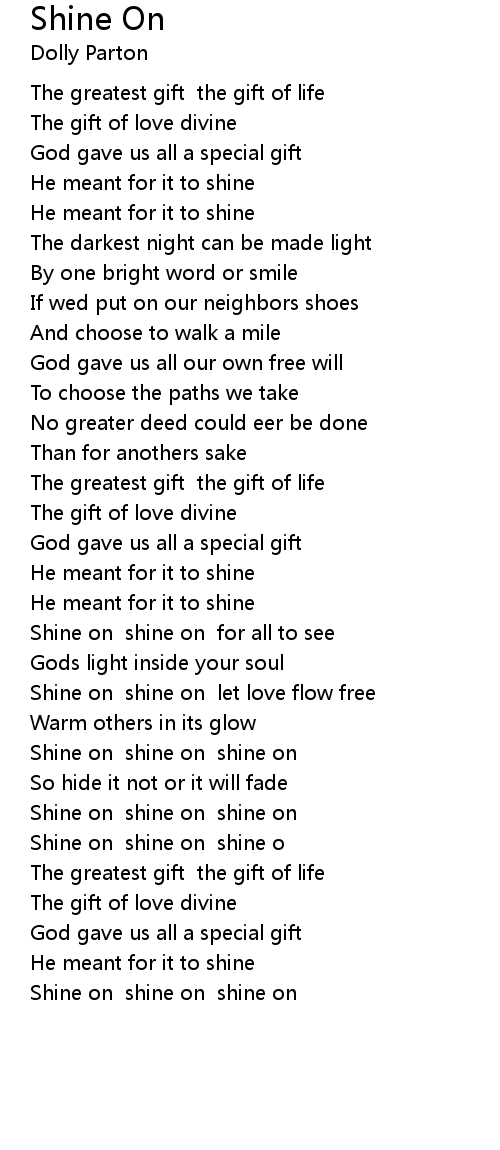 Shine on shine on shine o |