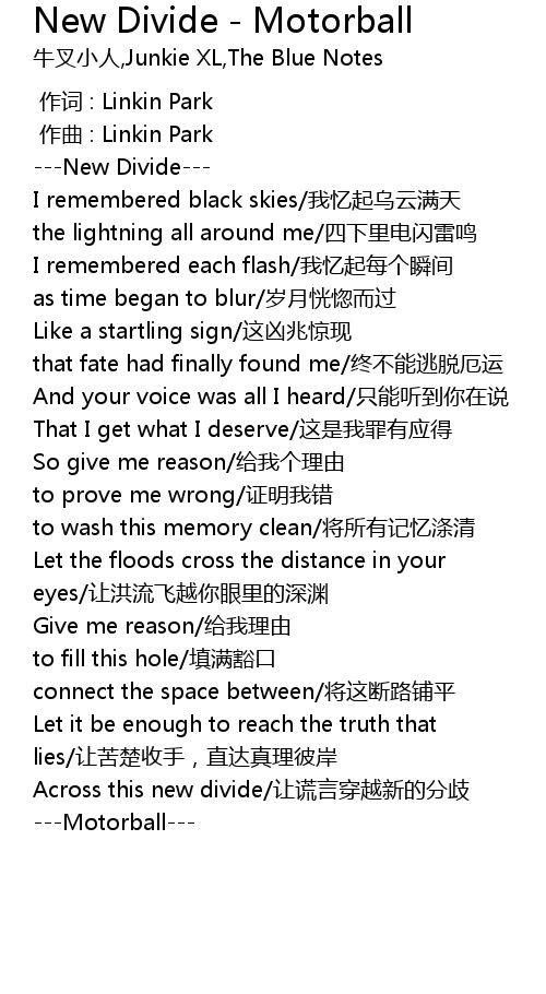| [00:00.000] | 作词 : Linkin Park |