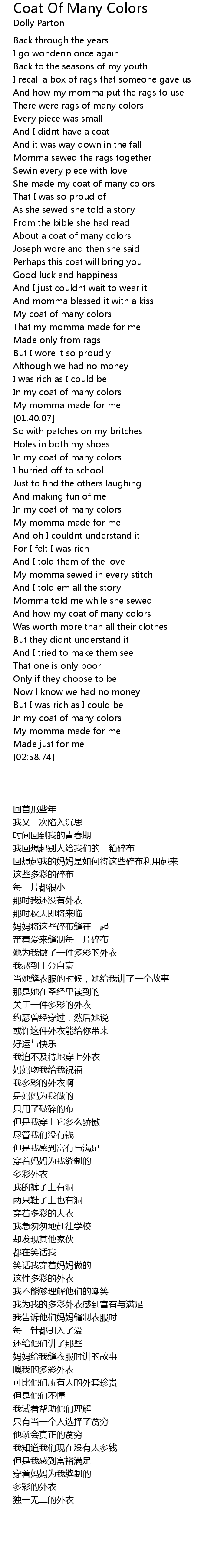 And how my coat of many colors |