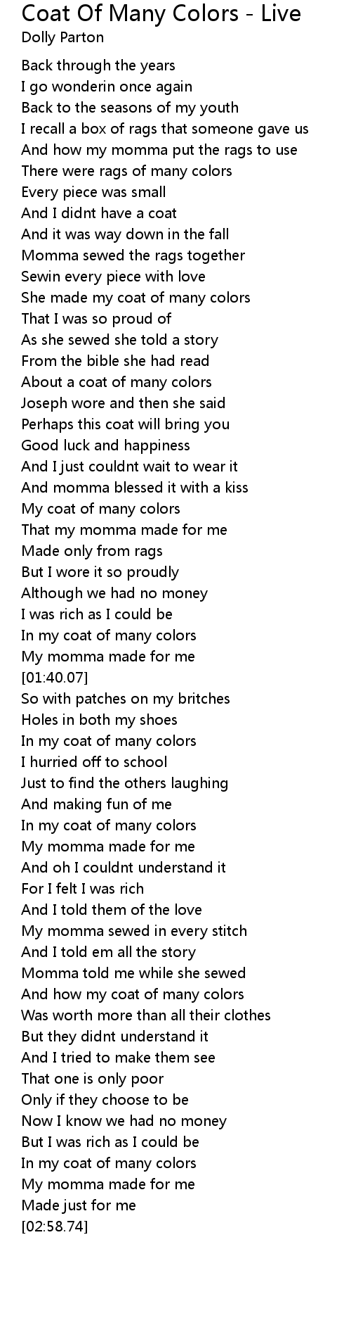 And how my coat of many colors |