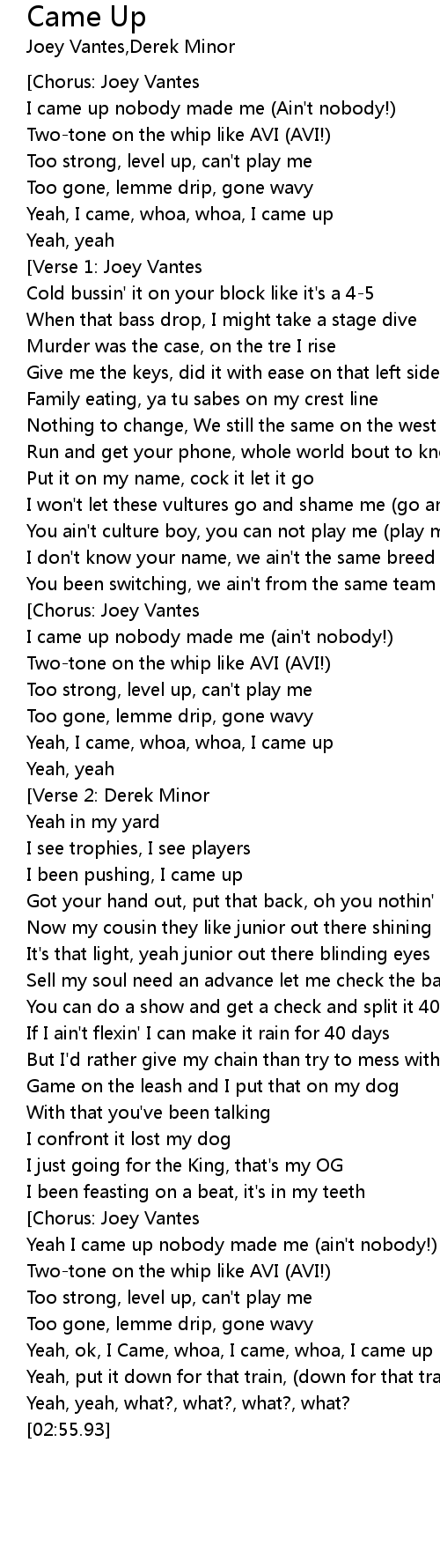 Yeah, ok, I Came, whoa, I came, whoa, I came up |