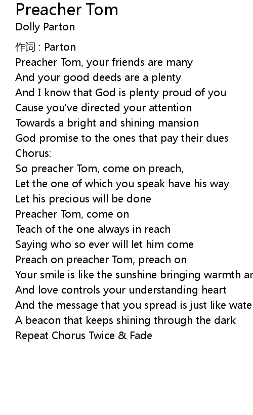 | Preacher Tom, come on | |