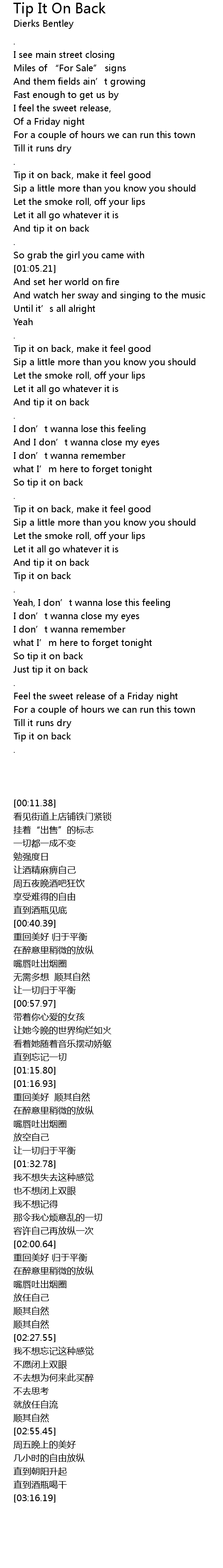 | [00:38.46] | 直到酒瓶见底 |