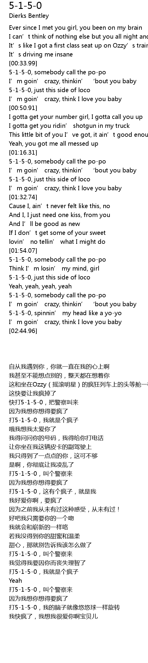| [00:34.79] | 5-1-5-0, somebody call the po-po |