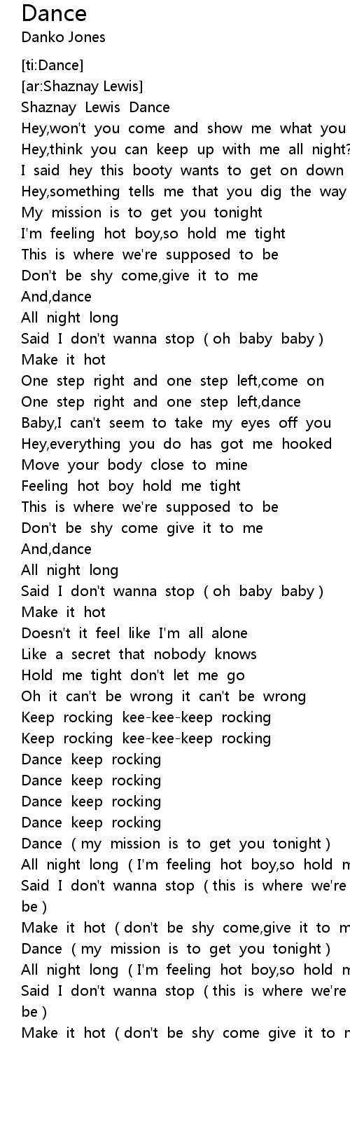 | [02:54.382] | Dance (my mission is to get you tonight) |