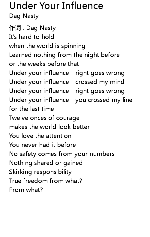 | Under your influence right goes wrong | |