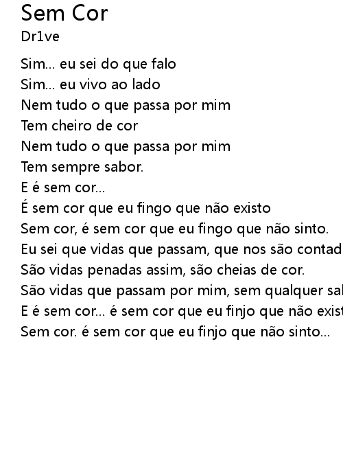 | Sem cor, e sem cor que eu fingo que n o sinto. | |