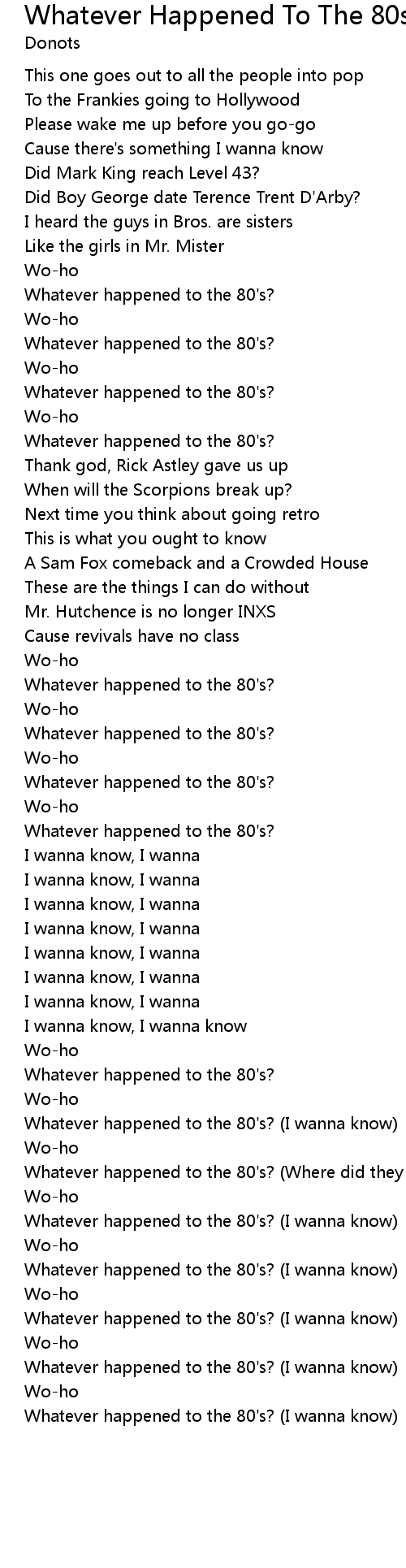 Whatever happened to the 80's? (I wanna know) |