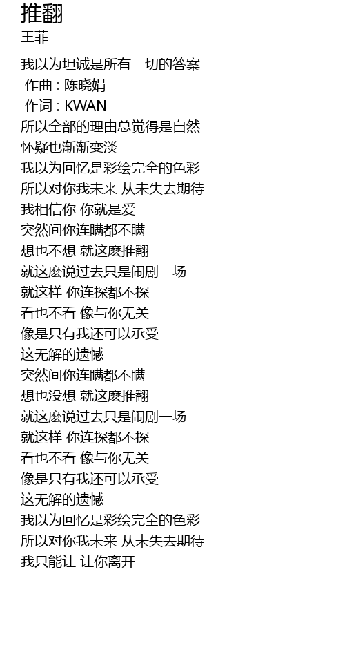 | [01:41.000] | 想也不想 就这麽推翻 |