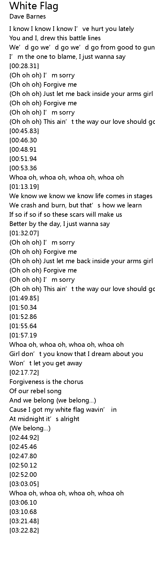 | [00:55.28][00:46.30] | I got my white flag wavin' in |