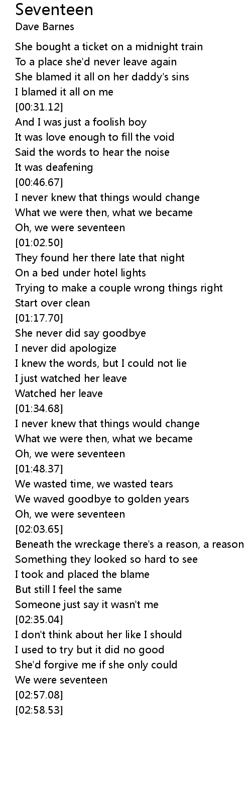 Oh, we were seventeen |