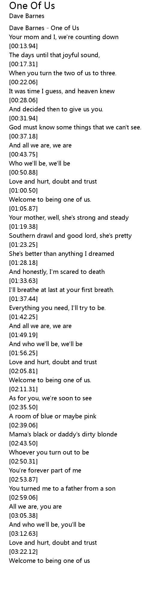 Dave Barnes - One of Us |